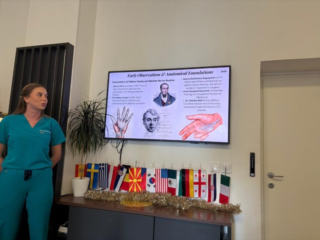 Д-р Глориа Ѓоргова на денешниот Journal Club презентираше за развојот на реконструктивната хирургија – од Sushruta, преку Ambroise Paré и Sir Harold Gillies, до пионерите на микроваскуларната хирургија Dr. Harry Buncke и Dr. Marco Godina.